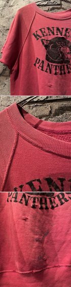 ・当該個体は 【 サンフェイド系ビンテージ 】 のスウェットやフーディーの中でも特に僅少な 《 ピンク 》 系カラー。フロントに施されたユニークで愛らしい、単色フロッキー仕様のブラックパンサーのグラフィックは実にムード満点。ピンクボディーに擦れた褪色系のブラックフロッキープリントはもちろんのこと、何より近年、非常に入手が難しくなっている実着用可能サイズ個体。その仕様や意匠からおおよそ、〜1960年代頃の個体と推測することが出来ます。この機会をお見逃しなく。