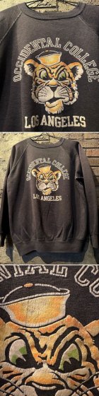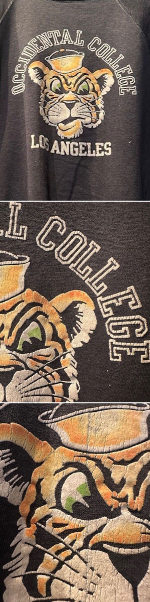 ・当該個体は 【 サンフェイド系ビンテージ 】 のスウェットやフーディーの中でも特に、素晴らしい経年昇華を遂げるとされる所謂、 《 ネイビー/ナス紺 》 系カラー。フロントに施された愛らしいマスコットキャラはユニーク且つ、堪りません。ネイビーボディーに痩せ擦れたカラーフロッキープリントはもちろんのこと、何より近年、非常に入手が難しいとされるゆったり、たっぷりサイズの個体。その仕様や意匠からおおよそ、1960年代頃の個体と推測することが出来ます。この機会をお見逃しなく。