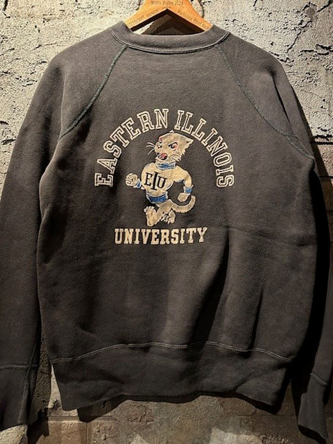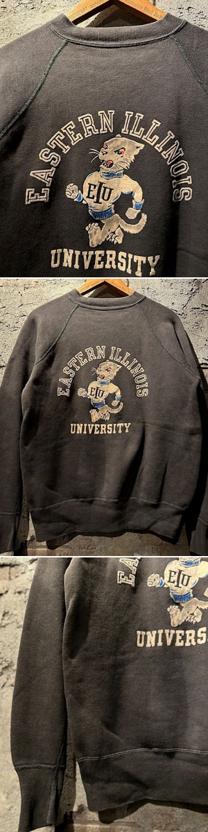 ・当該個体は 【 サンフェイド系ビンテージ 】 のスウェットやフーディーの中でも特に、素晴らしい経年昇華を遂げるとされる所謂、 《 ブラック/スミクロ 》 系カラー。フロントに施されたカラーフロッキーによるグラフィックも実に愛らしくて堪りません。ブラックボディーに施されたカラーフロッキープリントはもちろんのこと、何より近年、非常に入手が難しいとされる実着用可能サイズ個体。その仕様や意匠からおおよそ、1960年代頃の個体と推測することが出来ます。この機会をお見逃しなく。