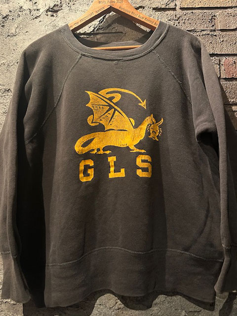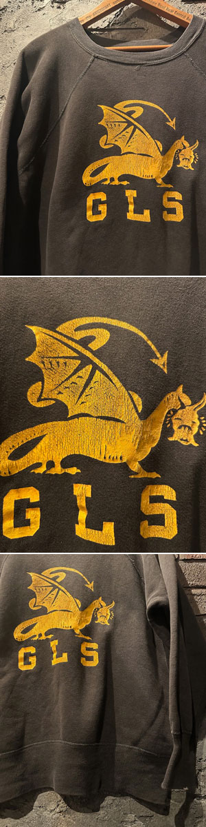 ・当該個体は 【 サンフェイド系ビンテージ 】 のスウェットやフーディーの中でも特に、素晴らしい経年昇華を遂げるとされる所謂、 《 ブラック 》 カラー。フロント部には何ともアイコニックでムード満点のドラゴンモチーフのグラフィックプリントが。概ね〜1960's の個体と推定。クラックしたイエローのグラフィックプリントもまたムード満点。配色、フォントはもちろんのこと、何より近年、非常に入手が難しくなっている、ゆったり、たっぷりサイズ個体。この機会をお見逃しなく。